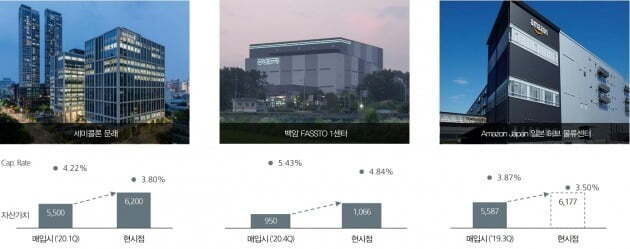 이렇게 만든 디앤디 랫폼리츠는 서울 영등포구 ‘세미콜론 문래’ 빌딩과 경기 용인 소재 물류센터 ‘백암 파스토 1센터’, 일본 오다와라 아마존 물류센터를 기초 자산으로 두고 있습니다.