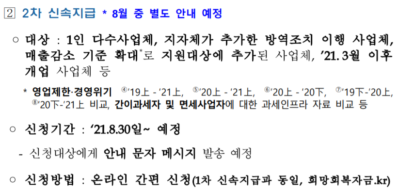 제일 중요한 것은 2차 신속지급 대상자입니다. 이 글을 보고 계신 대부분은 2차 신속지급 대상자에 속해있을 것이라 생각됩니다.