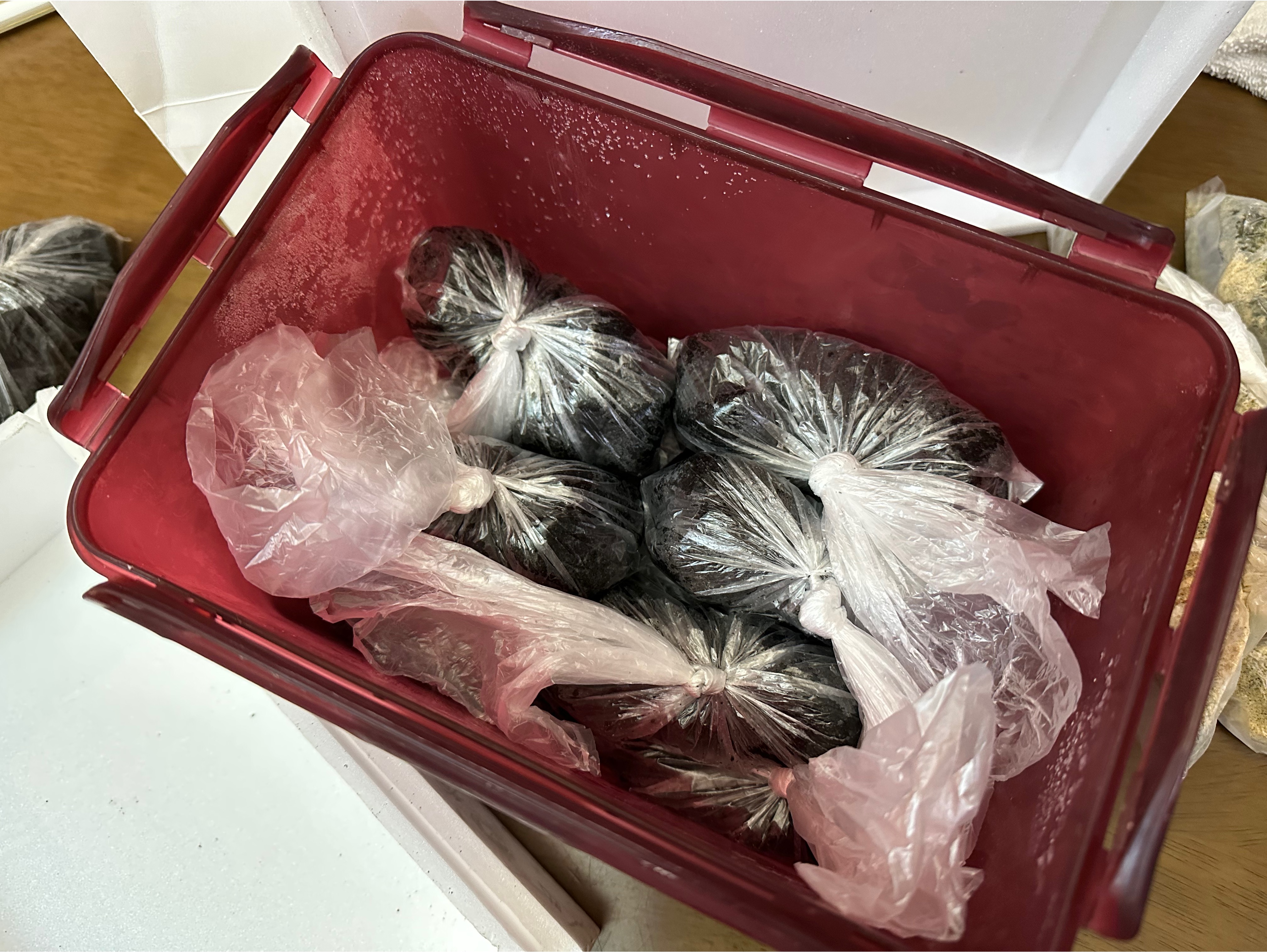 이렇게 김치통에 넣어 냉동고에 보관하면