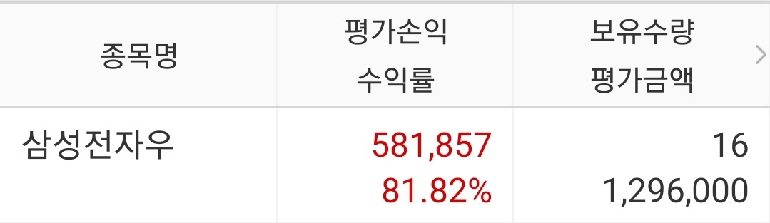 날이 갈수록 미친 듯이 치솟는 삼성전자우는 나에게 빛나는 82% 수익률을 안겨주고 장 종료했다.