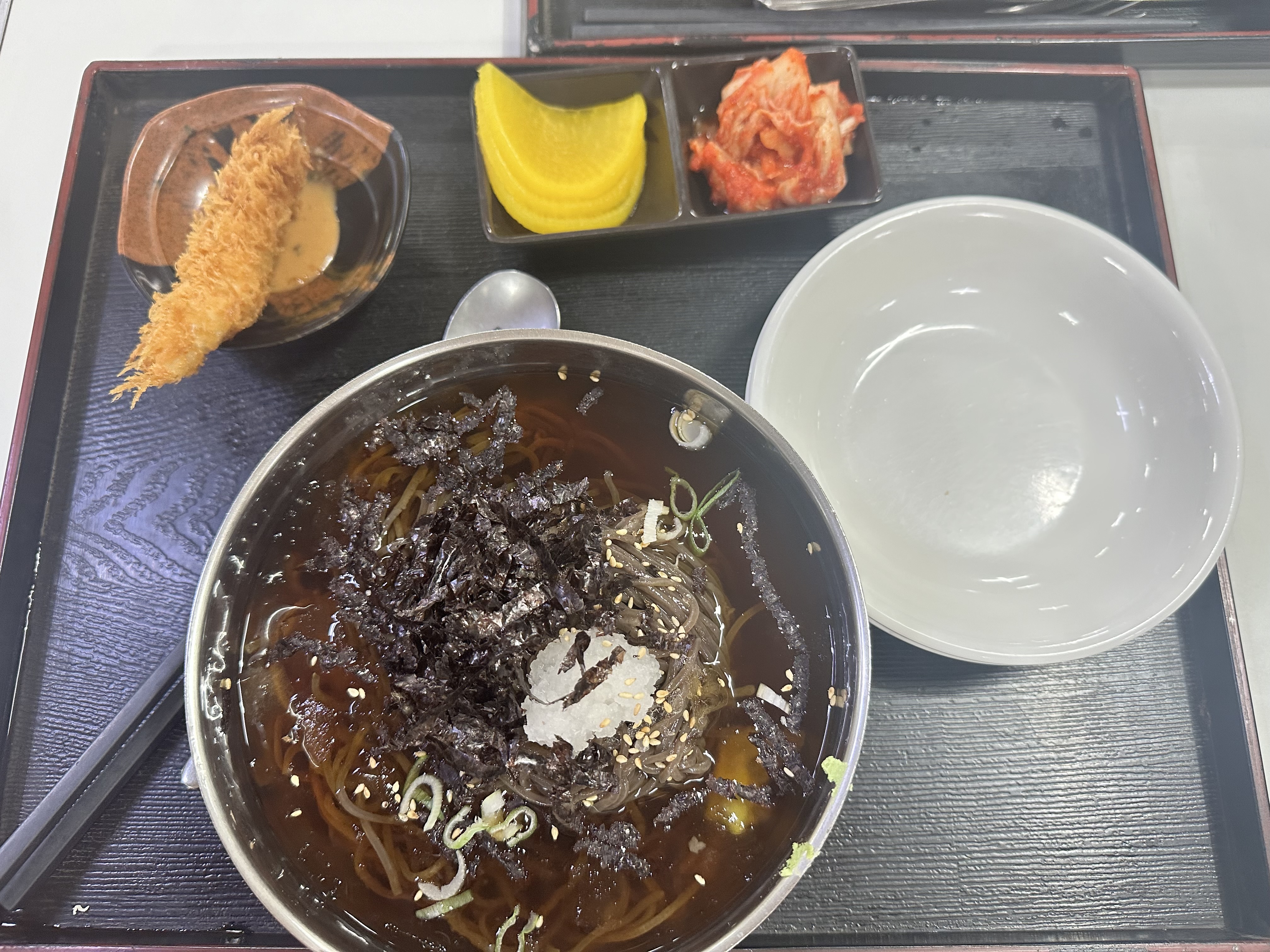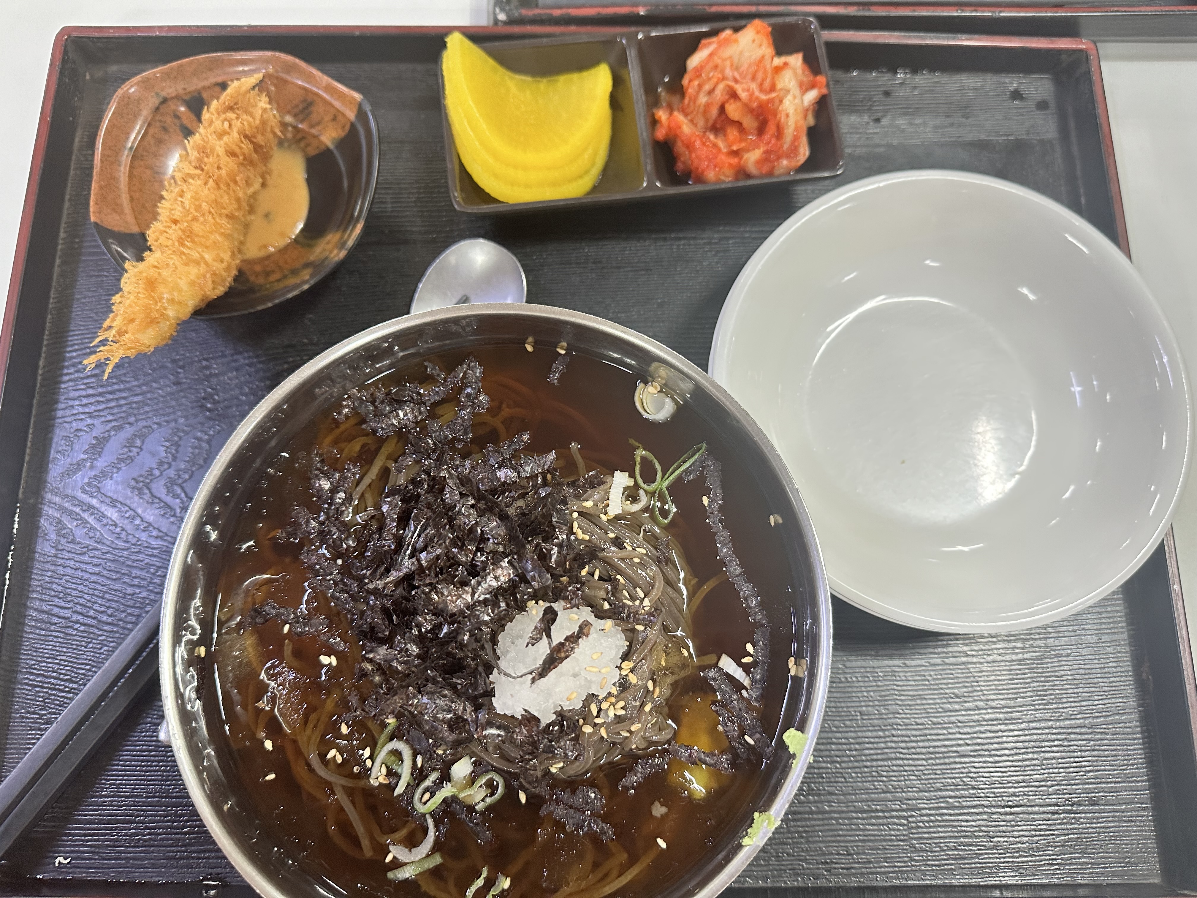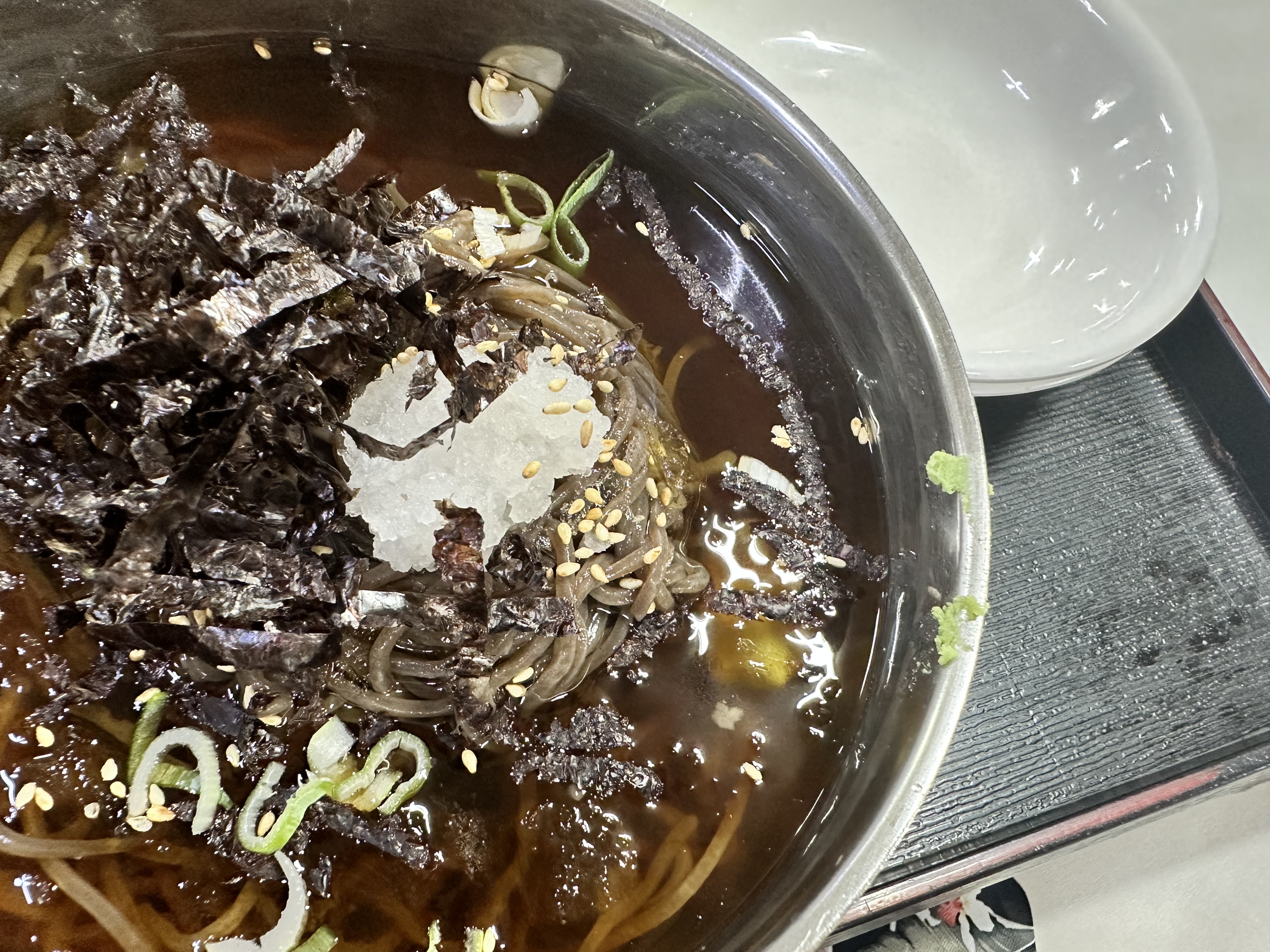 살얼음이 없는 깔끔한 국물의 냉모밀입니다.